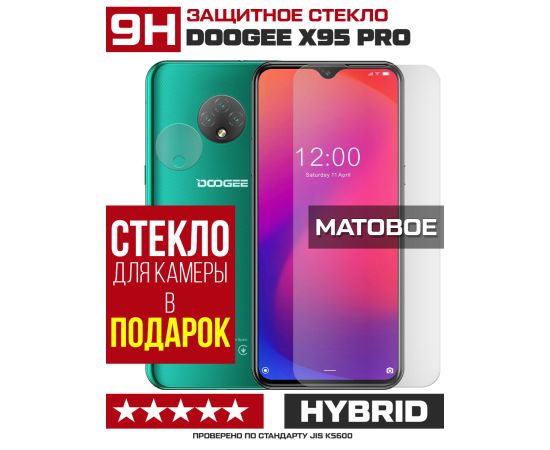 Стекло защитное гибридное МАТОВОЕ Krutoff для Doogee X95 Pro + защита камеры (2 шт.)