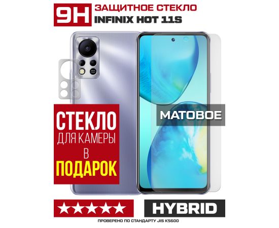 Стекло защитное гибридное МАТОВОЕ Krutoff для INFINIX Hot 11S + защита камеры (2 шт.)