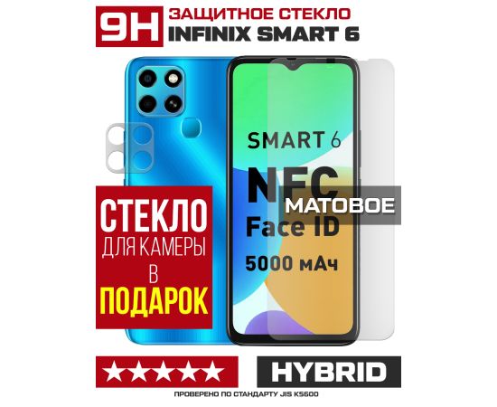 Стекло защитное гибридное МАТОВОЕ Krutoff для INFINIX Smart 6 + защита камеры (2 шт.)