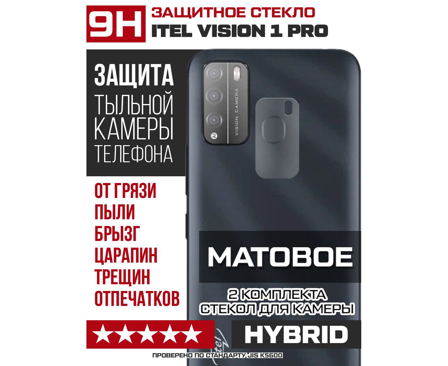 Стекло защитное гибридное МАТОВОЕ Krutoff для камеры ITEL Vision 1 Pro (2 шт.)