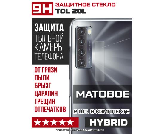 Стекло защитное гибридное МАТОВОЕ Krutoff для камеры TCL 20L (2 шт.)