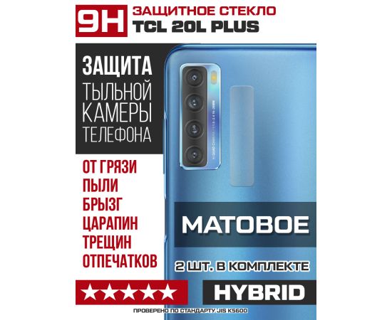 Стекло защитное гибридное МАТОВОЕ Krutoff для камеры TCL 20L Plus (2 шт.)