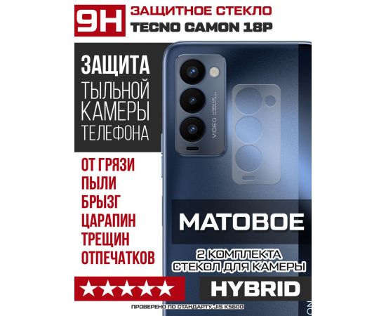 Стекло защитное гибридное МАТОВОЕ Krutoff для камеры Tecno Camon 18P (2 шт.)