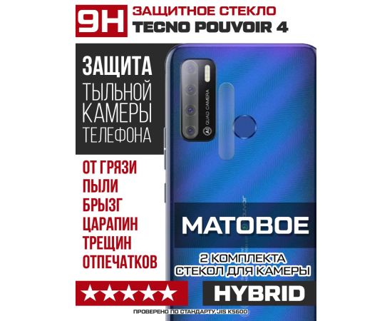 Стекло защитное гибридное МАТОВОЕ Krutoff для камеры Tecno Pouvoir 4 (2 шт.)
