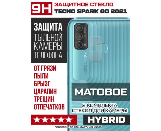 Стекло защитное гибридное МАТОВОЕ Krutoff для камеры Tecno Spark Go 2021 (2 шт.)