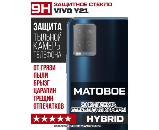Стекло защитное гибридное МАТОВОЕ Krutoff для камеры Vivo Y21 (2 шт.)