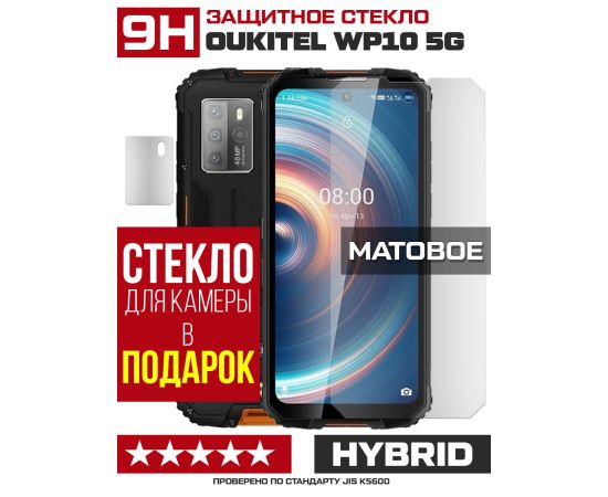 Стекло защитное гибридное МАТОВОЕ Krutoff для Oukitel WP10 5G + защита камеры (2 шт.)