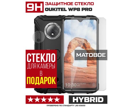 Стекло защитное гибридное МАТОВОЕ Krutoff для Oukitel WP8 Pro + защита камеры (2 шт.)