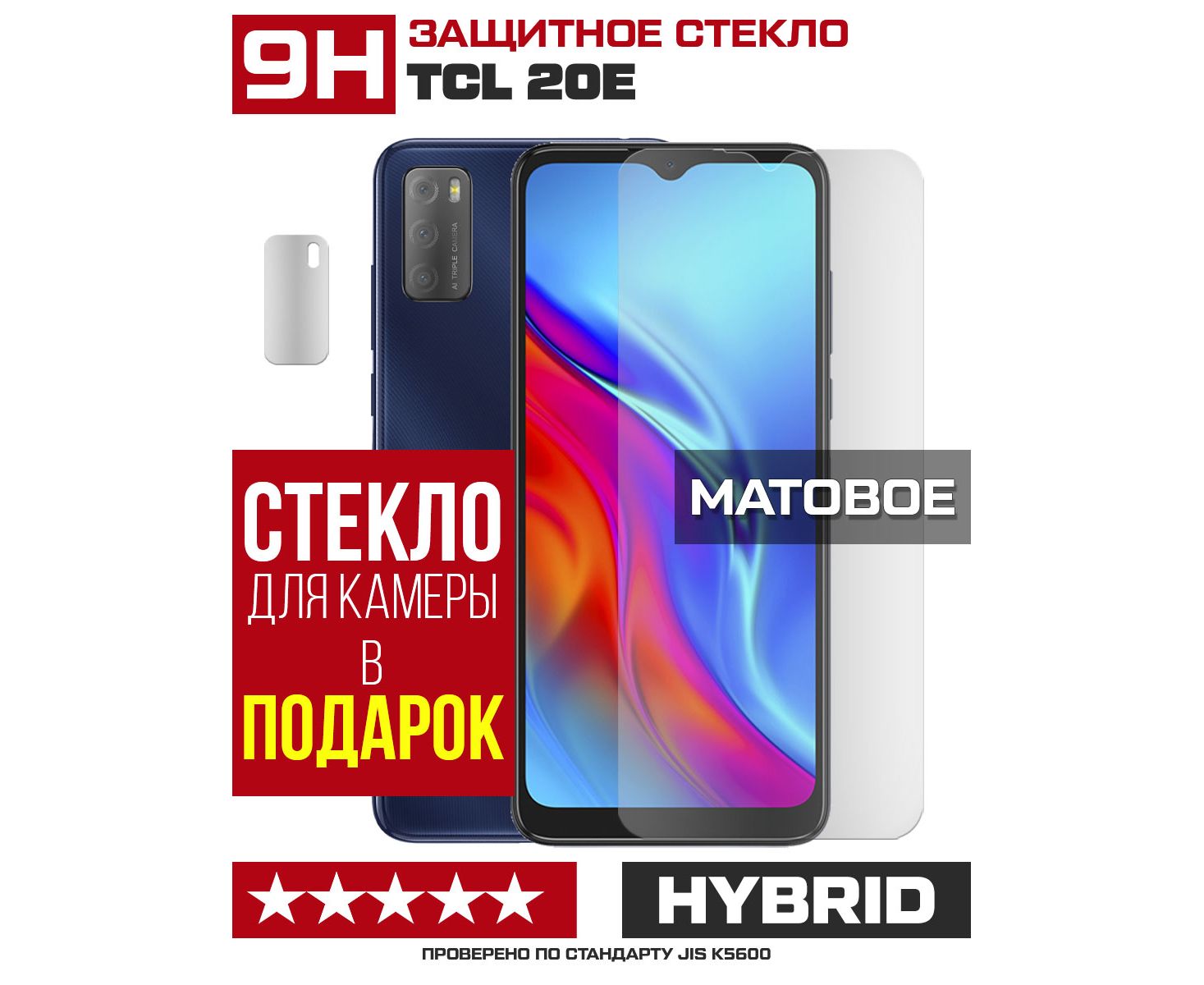 Стекло защитное гибридное МАТОВОЕ Krutoff для TCL 20E + защита камеры (2 шт.)