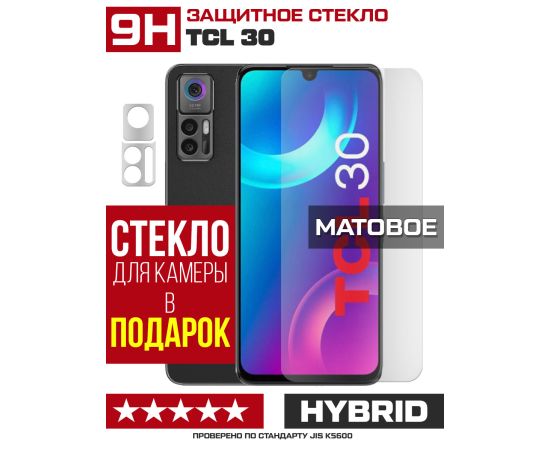 Стекло защитное гибридное МАТОВОЕ Krutoff для TCL 30 + защита камеры (2 шт.)