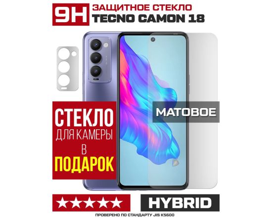 Стекло защитное гибридное МАТОВОЕ Krutoff для Tecno Camon 18 + защита камеры (2 шт.)