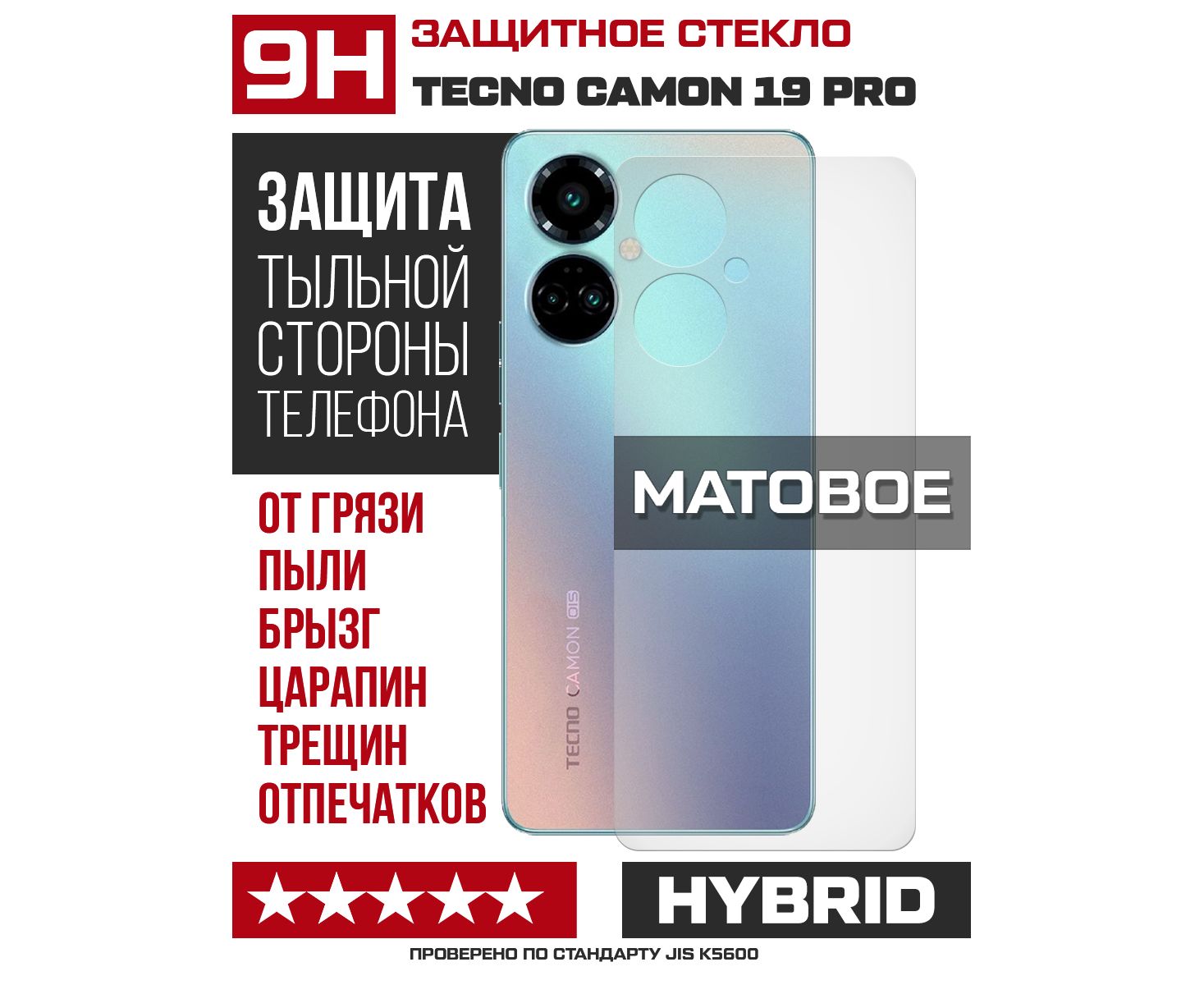 Стекло защитное гибридное МАТОВОЕ Krutoff для Tecno Camon 19 Pro задняя сторона