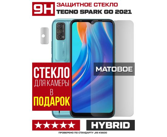 Стекло защитное гибридное МАТОВОЕ Krutoff для Tecno Spark Go 2021 + защита камеры (2 шт.)
