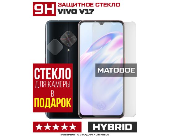 Стекло защитное гибридное МАТОВОЕ Krutoff для Vivo V17 + защита камеры (2 шт.)