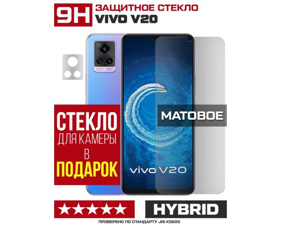Стекло защитное гибридное МАТОВОЕ Krutoff для Vivo V20 + защита камеры (2 шт.)
