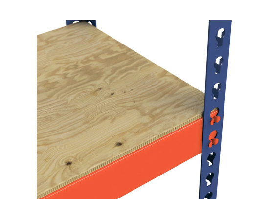 Стойки изготовлены из Г-образного стального холоднокатаного профиля, перфорированы по всей длине с шагом 45 мм, что позволяет установить полки на любой нужной высоте. Настил полок выполнен из влагостойкой фанеры толщиной 10 мм.