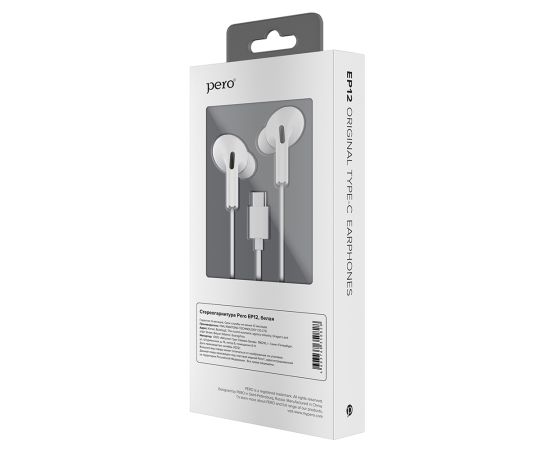 Стереогарнитура PERO EP12 Type-C connector белая