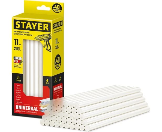 Стержни для клеевого пистолета STAYER Super Fix Universal 11x200 мм, 40 шт 2-06821-T-S40