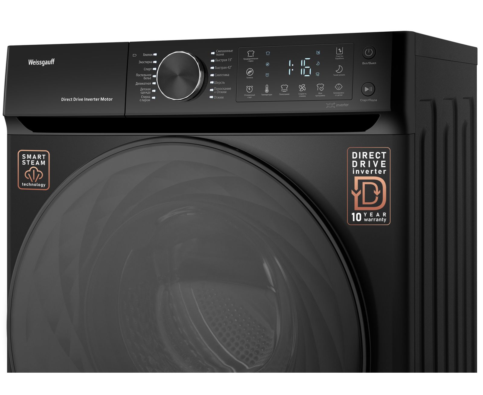 Стиральная машина Weissgauff WM 59411 Direct Drive Inverter Steam Matt Black