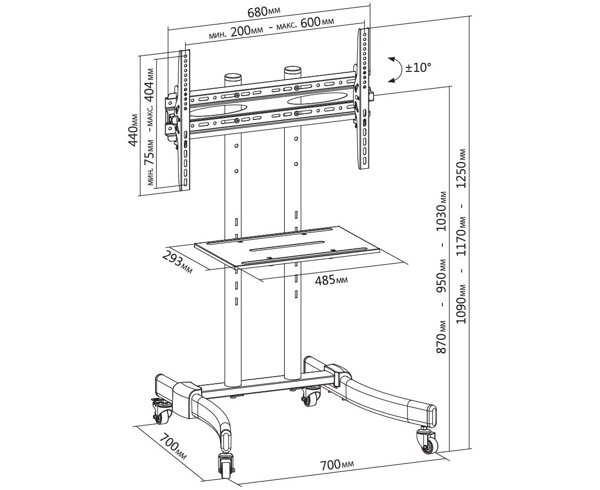 Максимальный вес оборудования: 50 кг