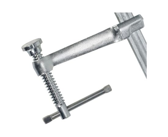 Кованая струбцина - это приспособление для зажима детали при обработке. Относится к типу F-образных струбцин и изготовлена из стали методом ковки, поэтому отличается высокой прочностью и длительной эксплуатацией. Зажим производится по всей длине штанги.