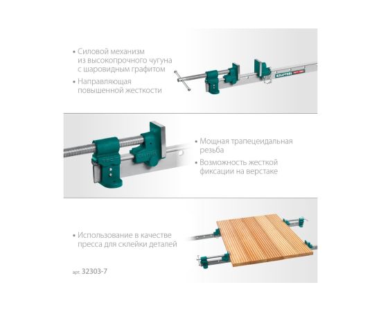 Технические характеристики струбцины с т-образным профилем KRAFTOOL 32303-7