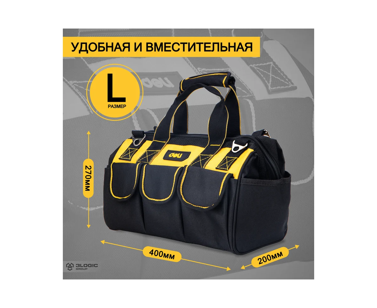 Сумка для инструментов Deli DL430117 400x200x270мм, 14 карманов, плечевой ремень, ткань Оксфорд