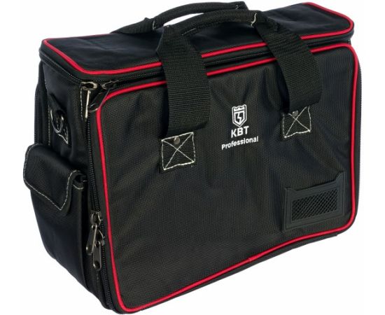 Сумка монтажника изготовлена из водонепроницаемого нейлона и обладает высокой прочностью. Имеет одно жесткое внутреннее отделение, два вместительных наружных кармана и откидывающиеся боковые секции с несколькими отделениями. Прошитые мягкие ручки обеспечивают удобство при переноске. Грузоподъемность сумки достигает 20 кг.
