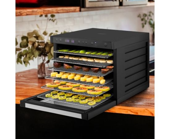 На сушилке можно установить температуру сушки в диапазоне 35–70 °С с шагом 1 градус. Сушилка оснащена таймером до 99 часов работы с шагом 1 час.