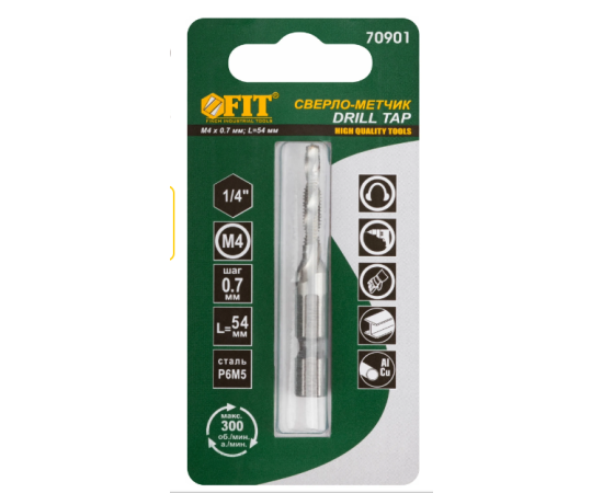 Сверло-метчик комбинированное метрическое FIT 70901 , М4х0,7 мм, 16/54 мм