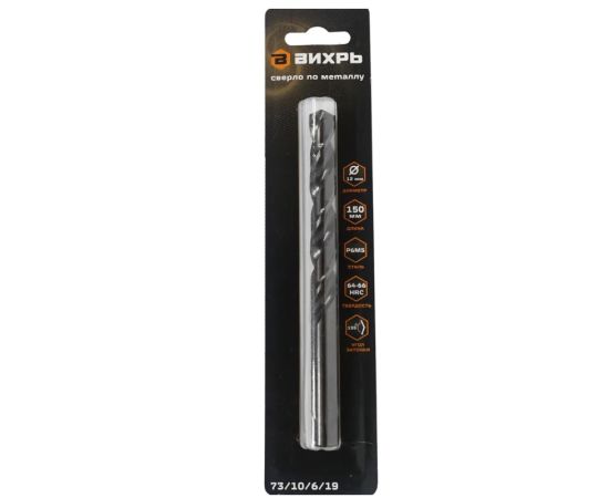 Сверло по металлу Вихрь 12 мм P6M5 (1 шт в блистере) 73/10/6/19