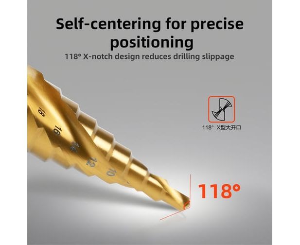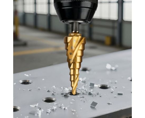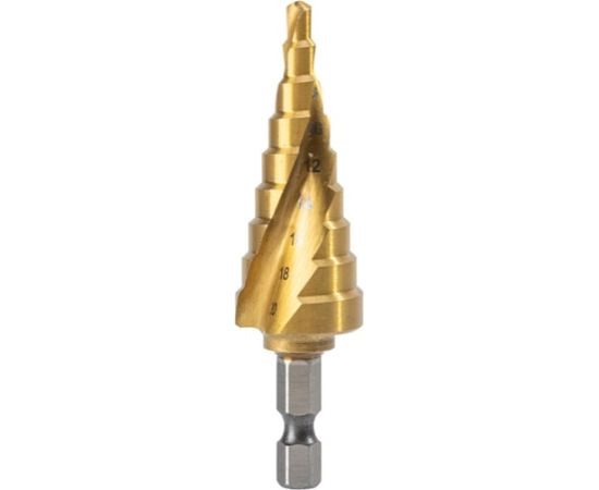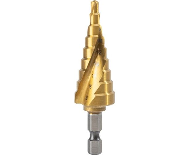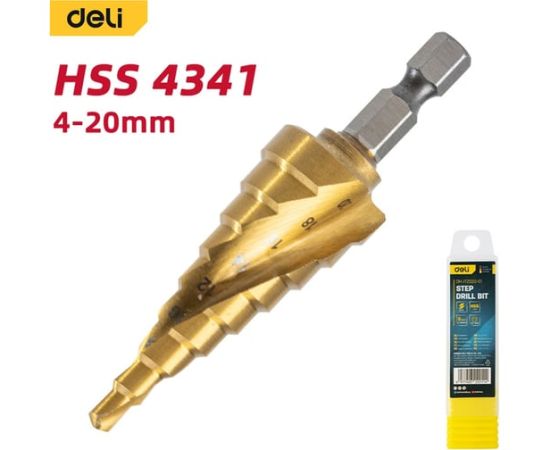 Сверло ступенчатое по металлу Deli DH-JTZ020-E1 4-20мм, HSS 4341 спиральная канавка, шестигранный хвостовик