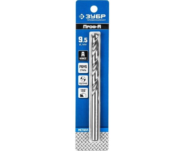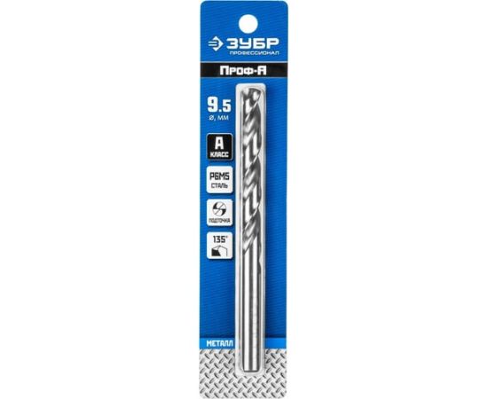 Сверло Зубр 29625-9.5 по металлу Д=9.5мм Дл=125мм (1пред) для дрелей