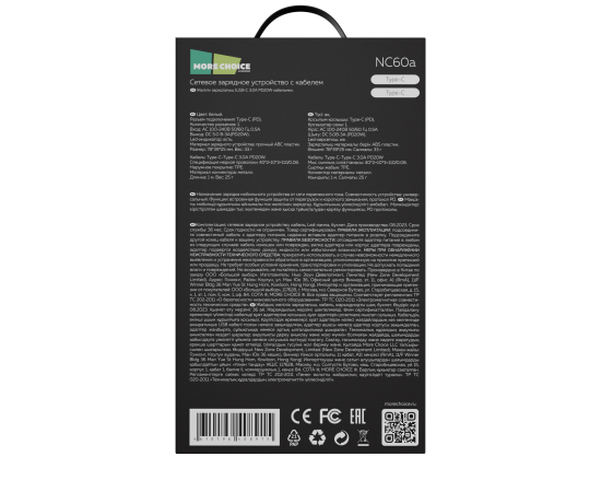 СЗУ 1USB-C 3.0A PD 20W быстрая зарядка для Type-C Type-C More choice NC60a (White)
