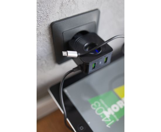 Материал: АВС-пластик Количество разъемов USB: 2 Вход: 100В/240В. Максимальный выходной ток: 2.1 A Кабель: встроенный Lightning 8-pin (1 м) Комплектация: сетевое зарядное устройство, держатель для кабеля, буклет Цвета: Black, White