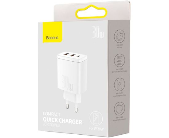 СЗУ Baseus Compact Quick Charger 2USB+Type-C 30W, CCXJ-E02 (White)