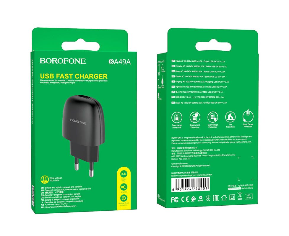 СЗУ BOROFONE BA49A Vast power 1USB, 2,1А (чёрный)