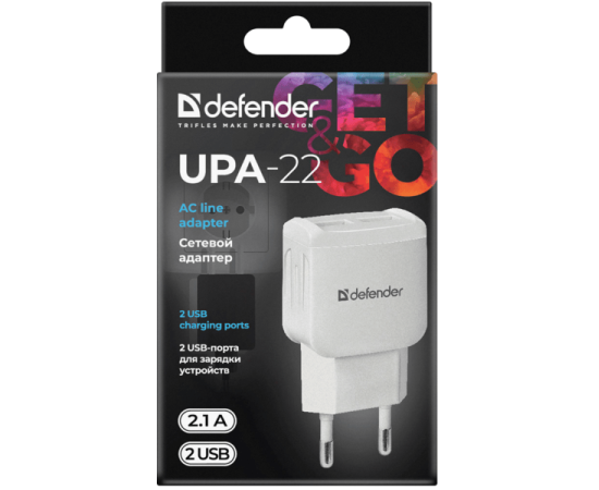 СЗУ DEFENDER UPA-22 5V/2.1A 2XUSB 83580