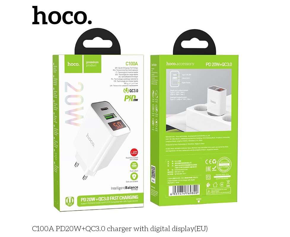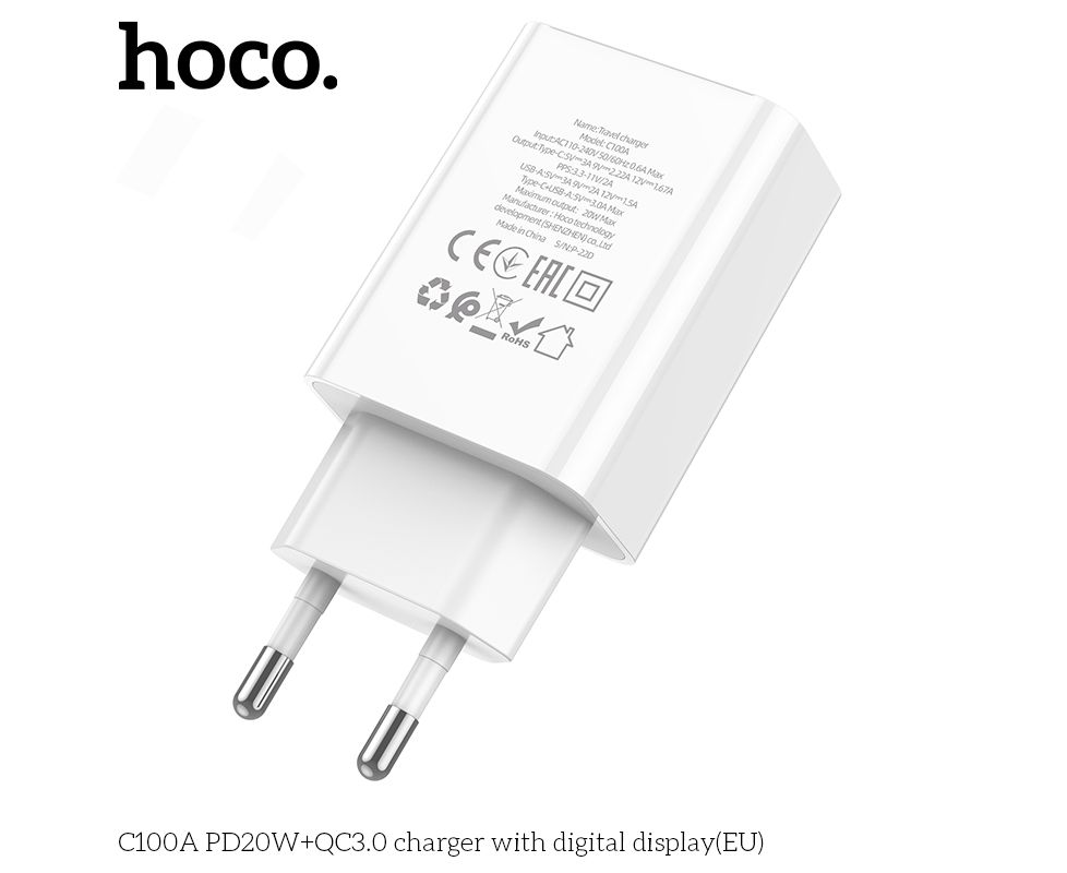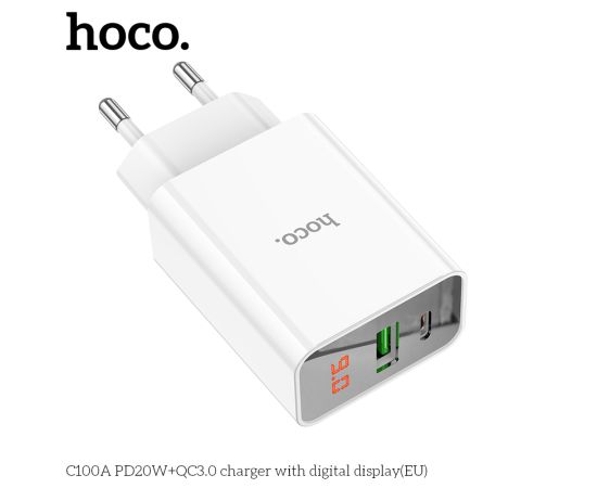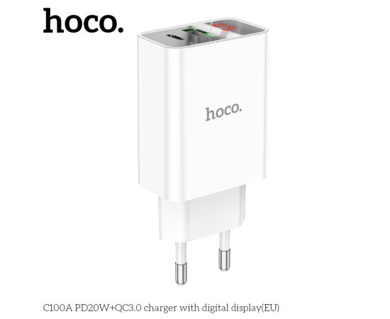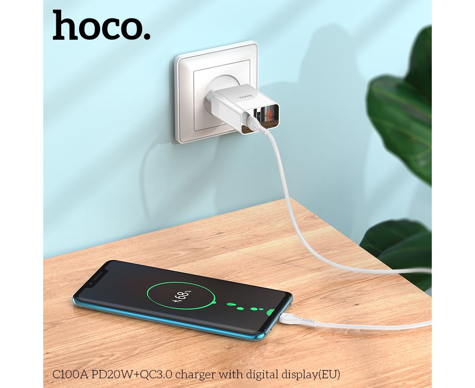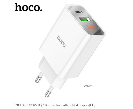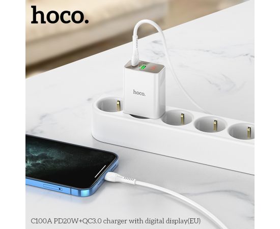 СЗУ HOCO C100A PD20W, QC3.0, digital display (белый)
