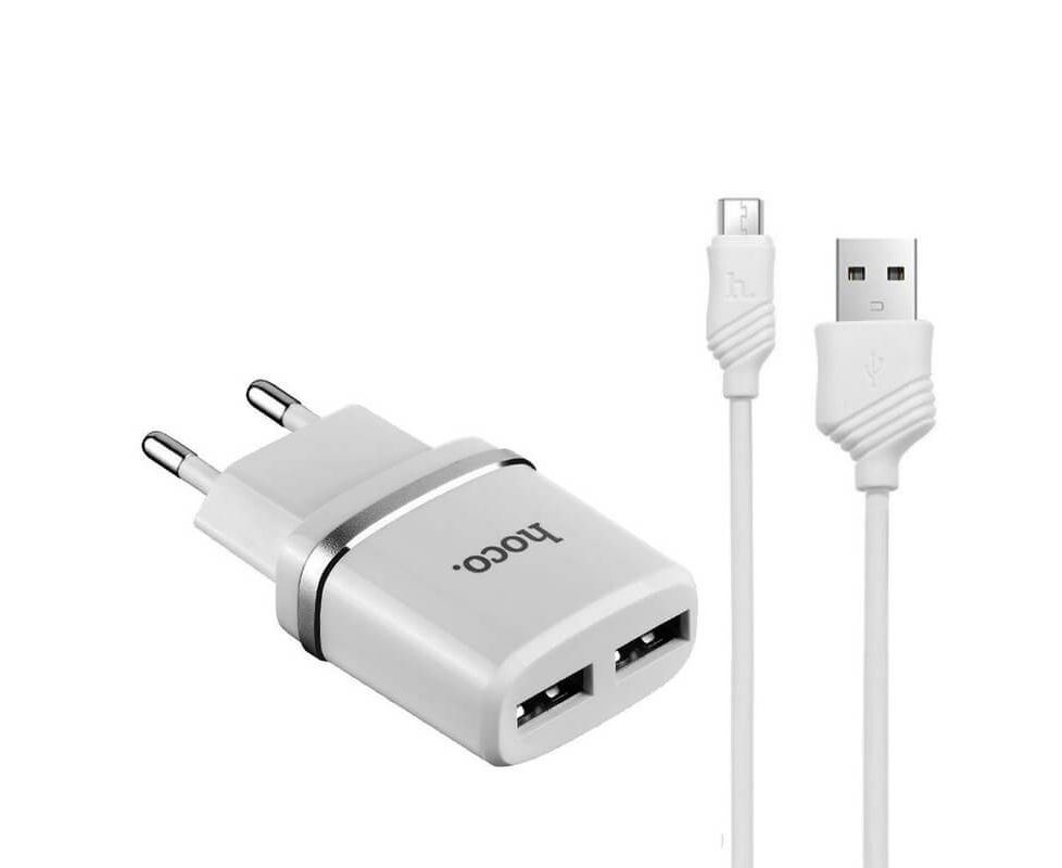 СЗУ HOCO C12, 2USB, 2.4A + Micro (белый)