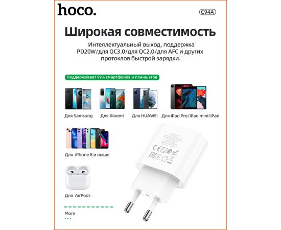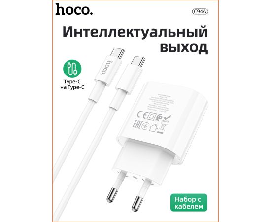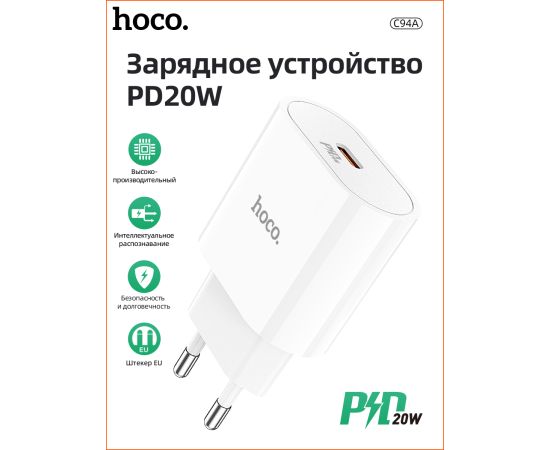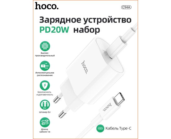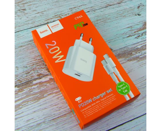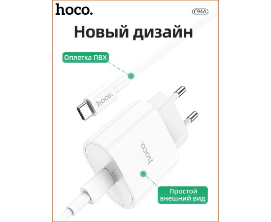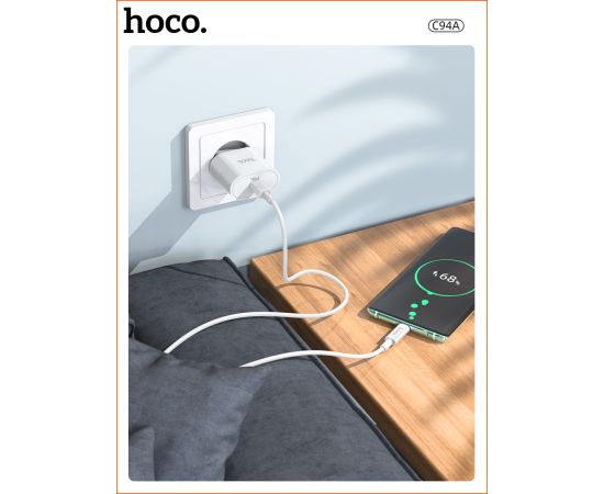 СЗУ HOCO C94A Metro, 1USB, PD20W, Type-C + Type-C (белый)