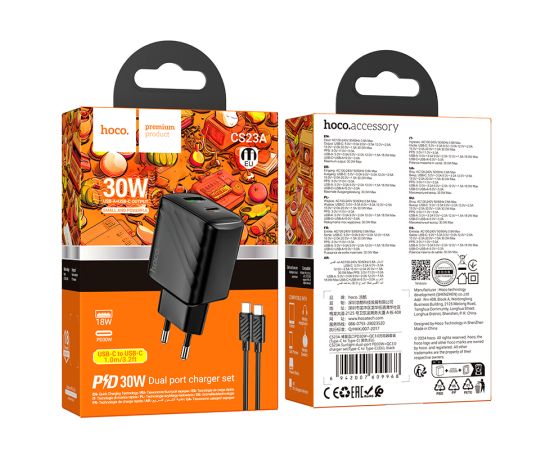 СЗУ HOCO CS23A Sunlight dual-port PD30W+QC3.0 charger set(Type-C to Type-C) black