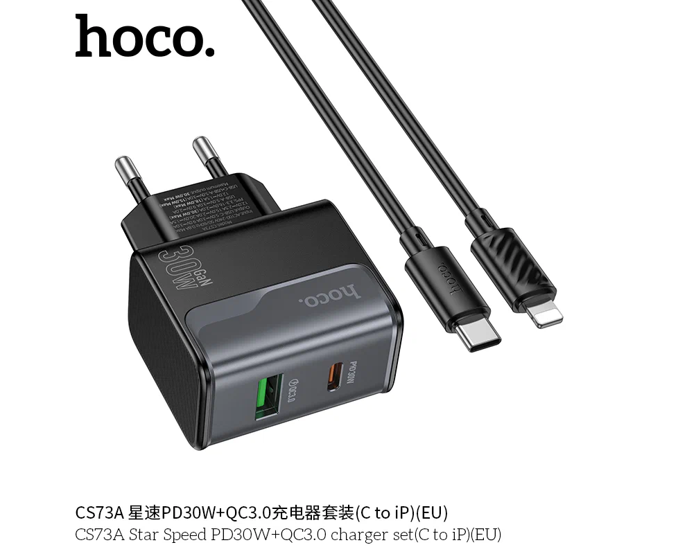 СЗУ HOCO CS73A Star Speed PD30W+QC3.0 (C to iP) (черный)