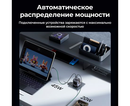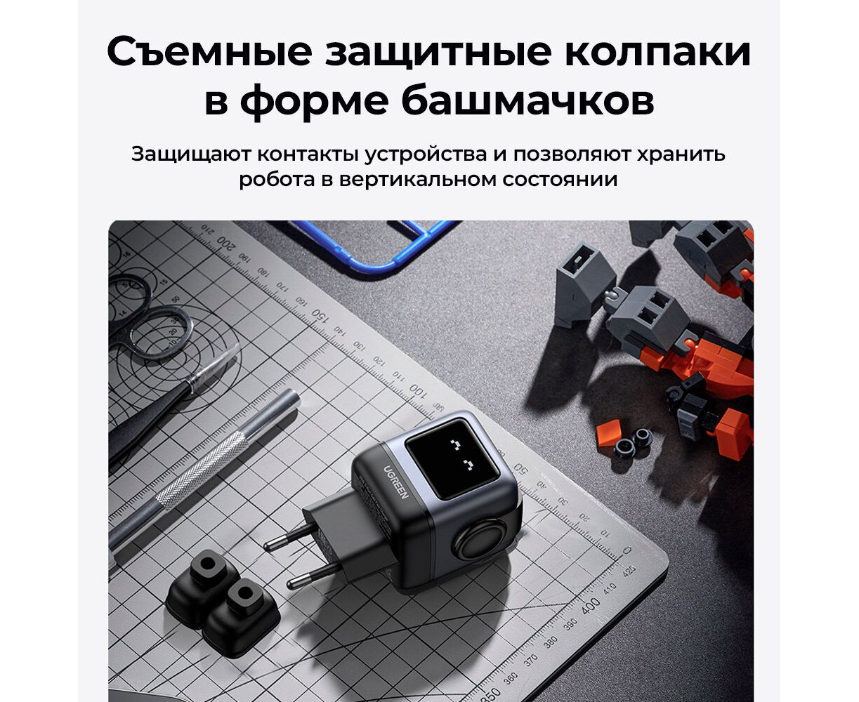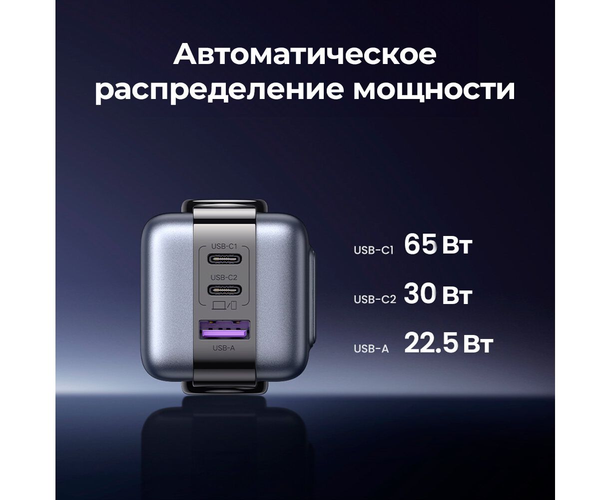 СЗУ UGREEN CD361 (25685B) USB-A+2*USB-C 65W Nexode Robot GaN Tech Fast Charger Gray