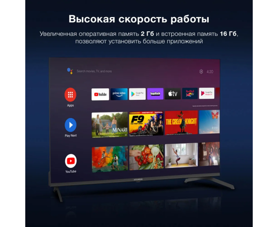 43" Телевизор Hyundai H-LED43BU7009 черный 3840x2160, 4K Ultra HD, 60 Гц, Wi-Fi, Smart TV, Android TV