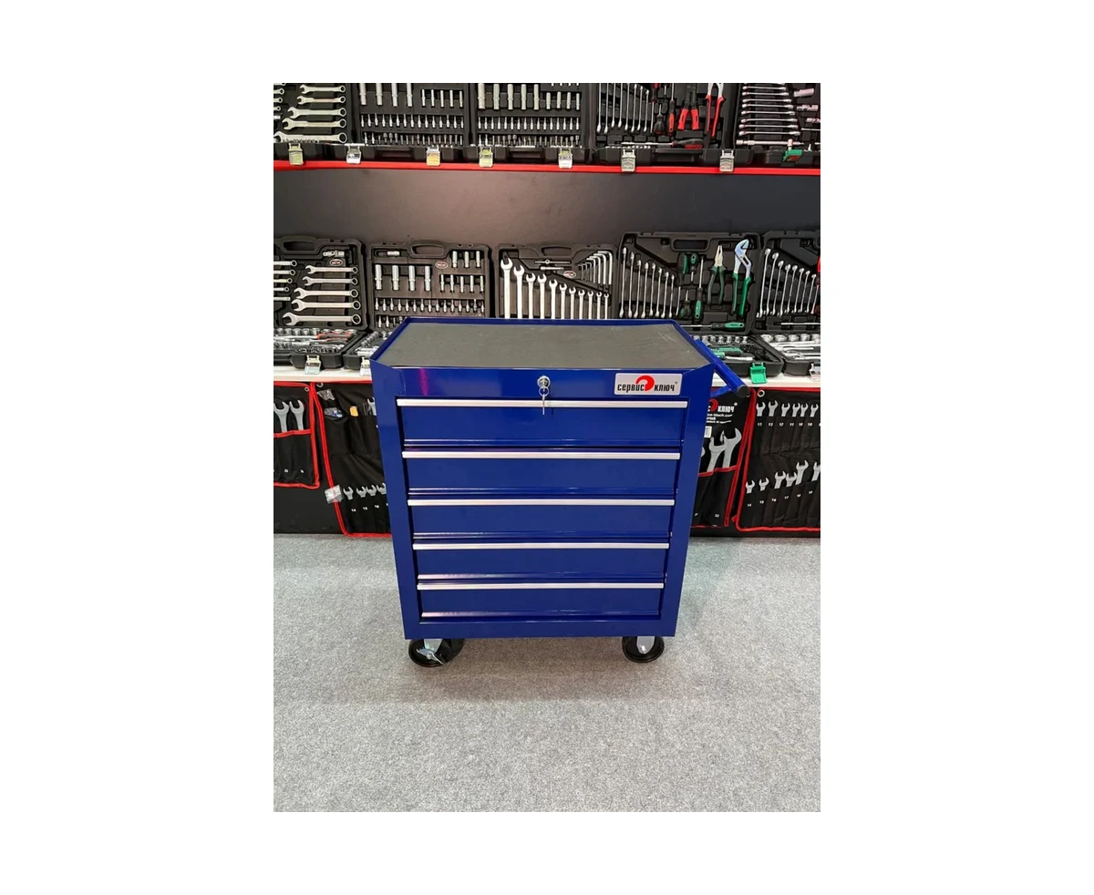 Инструментальная сервисная тележка СЕРВИС КЛЮЧ 5 секций – это универсальная металлическая передвижная конструкция для хранения инструментов и других принадлежностей. Она подходит для использования в различных условиях: в автосервисе, гараже на даче или мастерской. Вы сможете хранить в ней абсолютно разные предметы, будь то инструменты, рыболовные и охотничьи принадлежности и другие необходимые вещи.