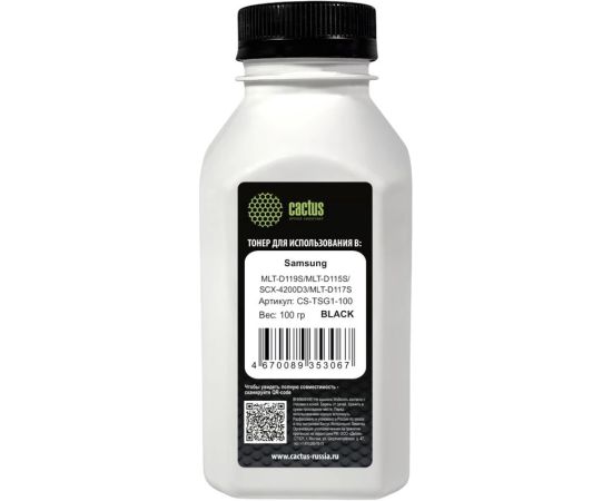 Тонер Cactus CS-TSG1-100 черный флакон 100гр для принтера Samsung MLT-D119S/MLT-D115S/SCX-4200D3/MLT-D117S