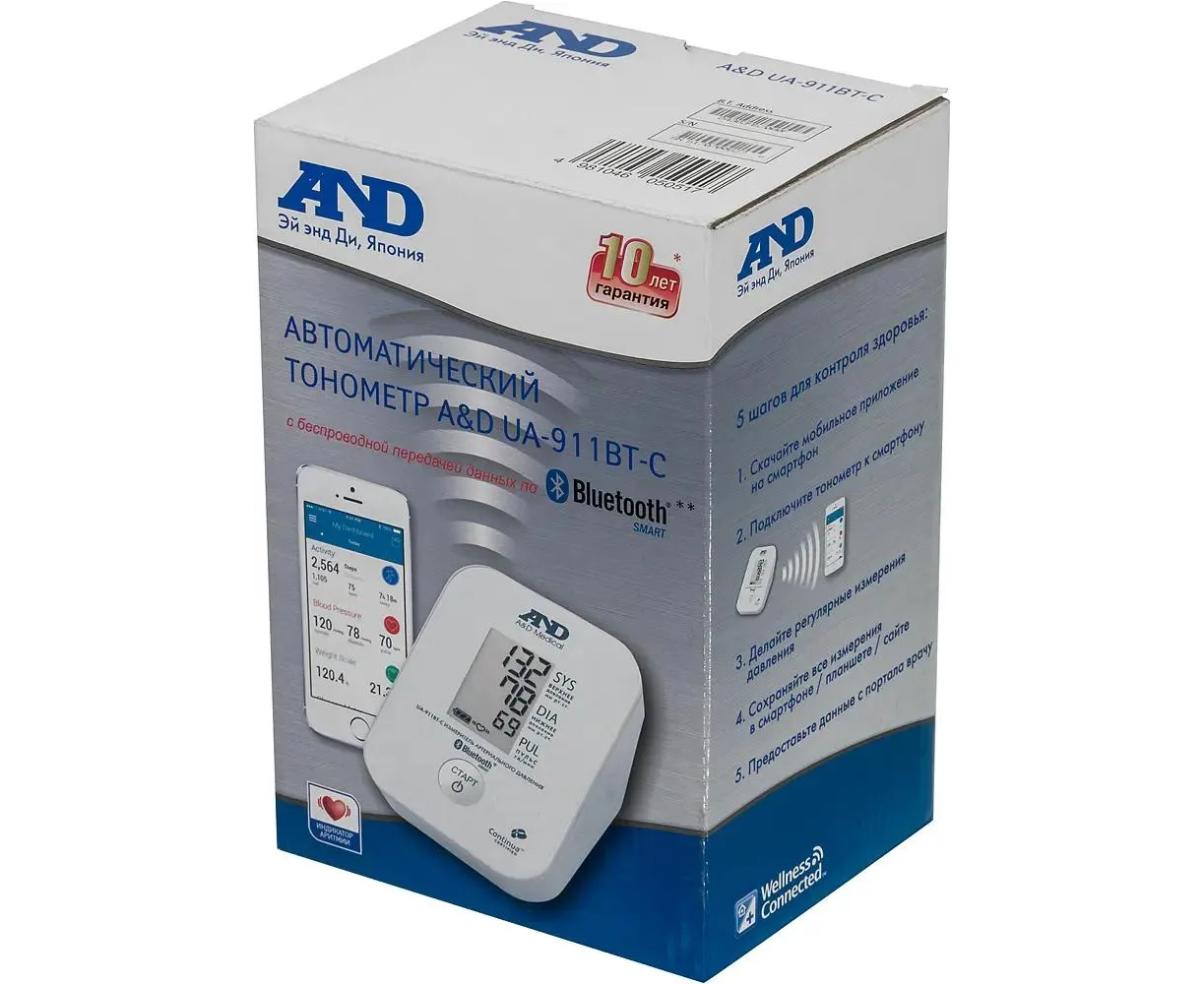 Простой в использовании и эргономичный тонометр современного автоматического типа A&D UA-911BT-C – это необходимый прибор для быстрого и удобного определения состояния организма прямо в домашних условиях. Устройство моментально измерит артериальное давление, посчитает частоту пульса, а также сообщит о появлении аритмии.