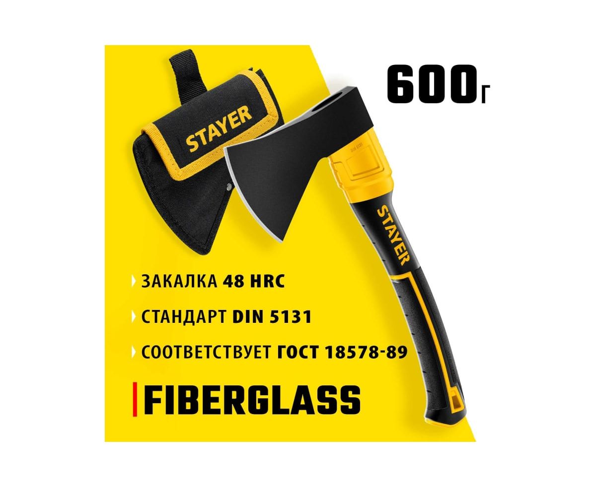 Кованый топор STAYER Fiberglass 600/800 г, с чехлом 2062-06P z02 применяется для столярных и плотницких работ.