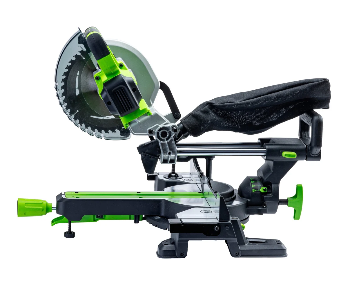Мобильная производительная аккумуляторная торцовочная пила Greenworks GD24MS216 с функцией протяжки – максимально удобная в эксплуатации.
